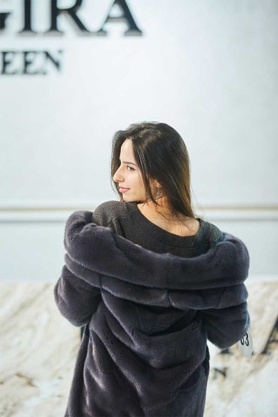 Красивое антрацитовое меховое пальто из норки. Подарит вам ощущения комфорта и нежного тепла даже в самую суровую зиму. Меховое изделие обладает длиной в 110 см. По талии и низу рукава кулиска. Отлично зарекомендовало себя в носке, всегда остается ярким и блестящим.