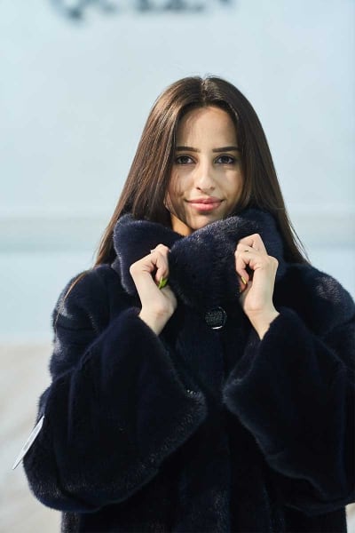 Меховое пальто норковое синего цвета