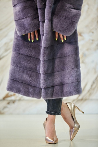 Меховое пальто в пурпурном цвете