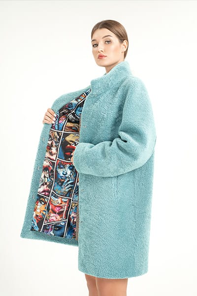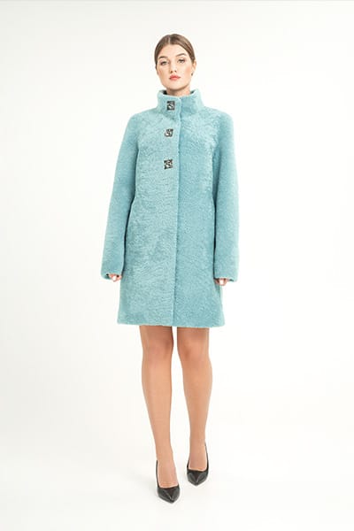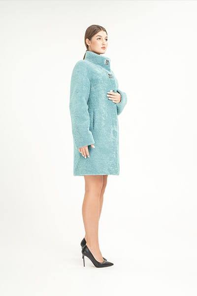 Шуба из керли М-308 из керли, длина изделия 90 см, цвет мята.