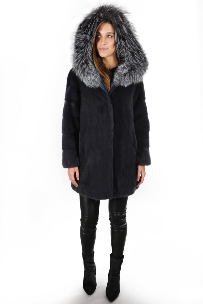 Шуба из норки с отделкой пуховик