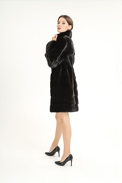Шуба поперечка К-517, длина шубы 90 см,цвет горячий шоколад.