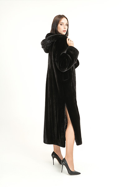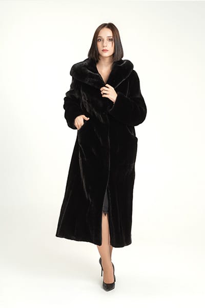 Шуба халат К-560Гр, длина шубы 120 см, цвет черный.