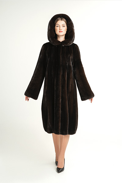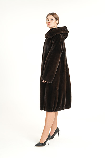 Шуба баллон К-562Гр, длина шубы 110 см, цвет махагон.