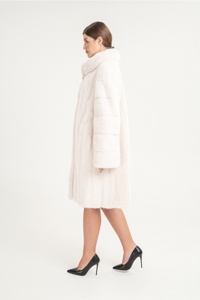 Шуба трапеция М-506р, длина шубы 100 см, цвет фламинго.