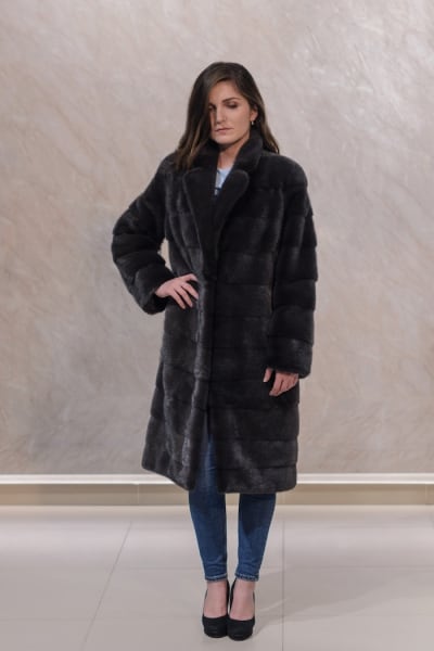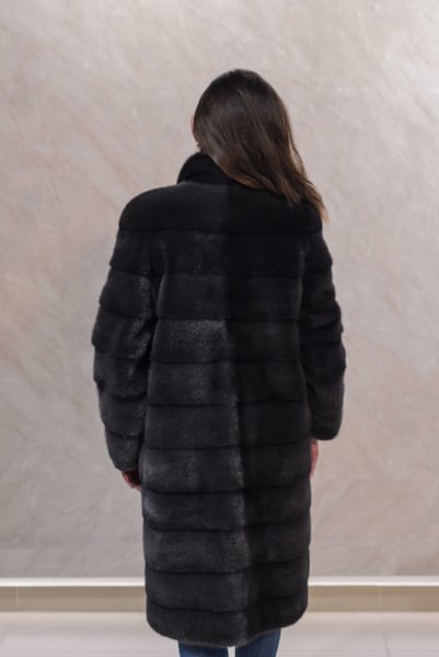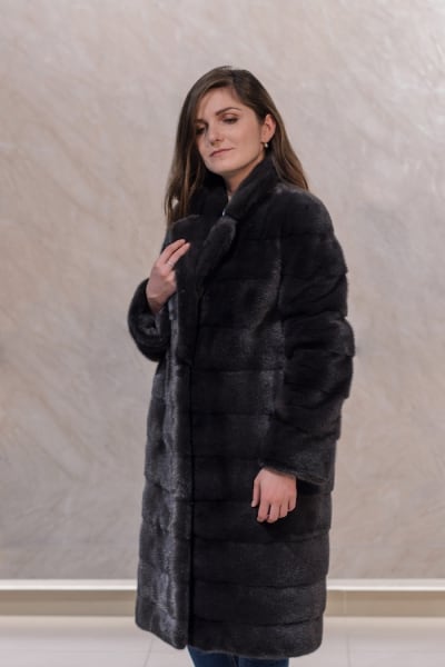 Это элегантная шуба-пальто из шоколадной норки насыщенного оттенка идеально дополнит ваш модный образ, и отлично подойдет для сочетания с любым стилем. В этом меховом пальто из норки безупречно сочетается всё: стильный воротничок английского покроя, прекрасный оттенок и актуальная длина.