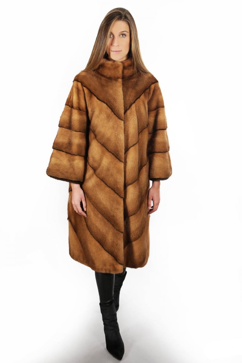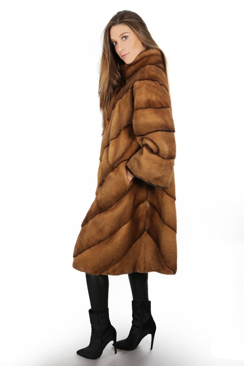 Шуба свингер выполнена из норки с воротничком шанель, всегда выглядит роскошно и очень изящно. Воротничок шанель – это открытое горло и круглый вырез, такой воротничок способен дополнить ваш образ, притягивая восхищенные взгляды.