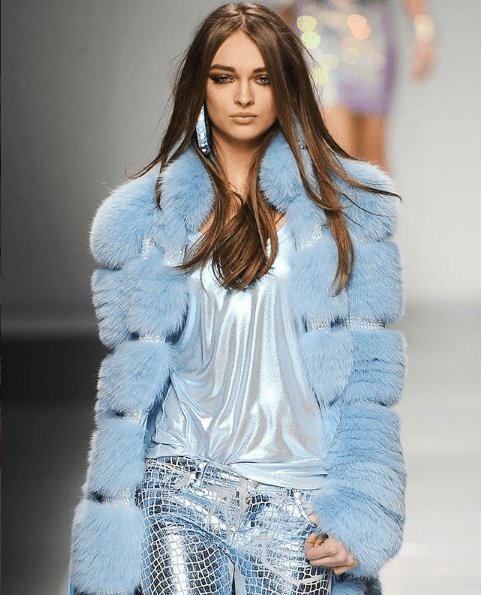 Синяя шубка является универсальным изделием и может отлично заменить привычные темные оттенки!