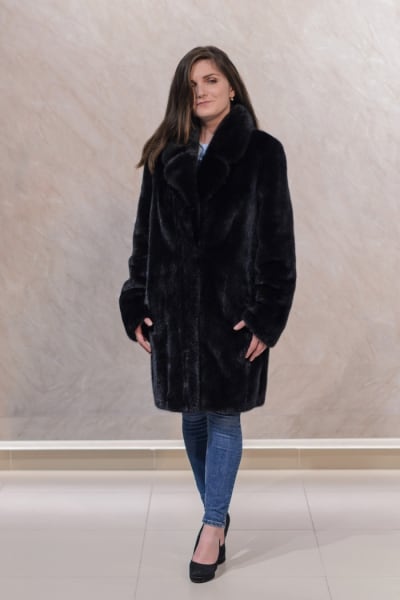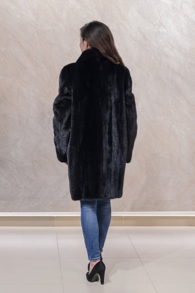 Свингер из черной норки выглядит очень женственно и изящно. Английский ворот является одним из самых популярных, за счет своей красоты и элегантности. Такое изделие выглядит очень стильно и изысканно, при этом отлично сохраняет тепло и может согреть вас даже в самые холодные дни месяца.